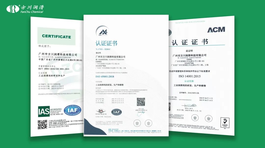 方川已獲得 ISO三體系認(rèn)證,包含:ISO9001質(zhì)量管理體系、ISO14001環(huán)境管理體系和ISO45001職業(yè)健康安全管理體系。