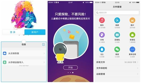 配置方面,X9搭載的是2.0GHz的MSM8953高通八核處理器,4GB內(nèi)存,3050mAh電池容量,支持閃充(而X9 Plus采用全新5V/4.5A低壓閃充方案),這相比X7略有提升。后置攝像頭也提至1600萬(wàn)像素。系統(tǒng)升級(jí)為Android6.0.1,UI界面仍然是Funtouch OS,系統(tǒng)功能部分有所優(yōu)化,如分屏任務(wù),可分屏應(yīng)用增加,支持QQ瀏覽器、天貓、美團(tuán)、WPS、有道云筆記等,這點(diǎn)算是一個(gè)不錯(cuò)的改進(jìn)。另外還增加了一個(gè)兒童模式,可完全阻斷扣費(fèi)行為。同時(shí)改良的文件管理也使得碎片化的安卓文件查找更加容易。
